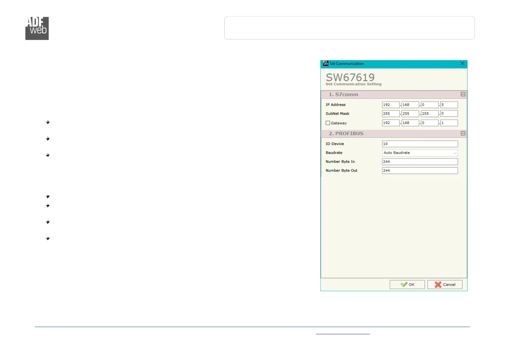 By Pressing the “Set Communication” button from the main window for SW67619 (Fig. 2)