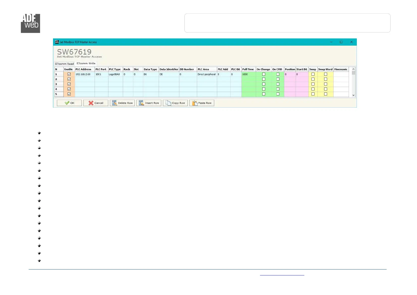In the field “Mnemonic” a description of the data inserted in the row is defined.