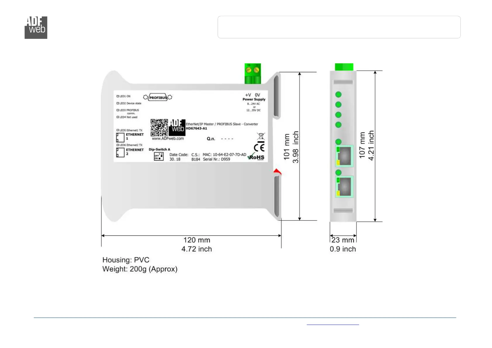 ADF Web HD67643-A1 - Mechanical Dimensions