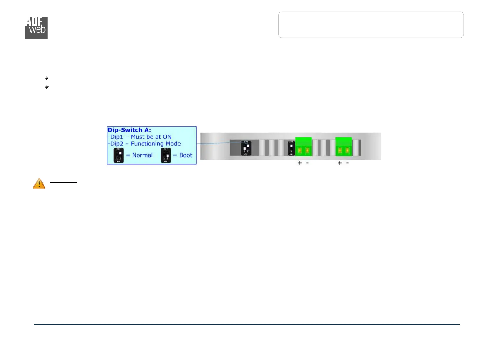 The second, with ‘Dip2 of Dip-Switch A’ at “ON” position, is used for uploading the Project and/or Firmware.