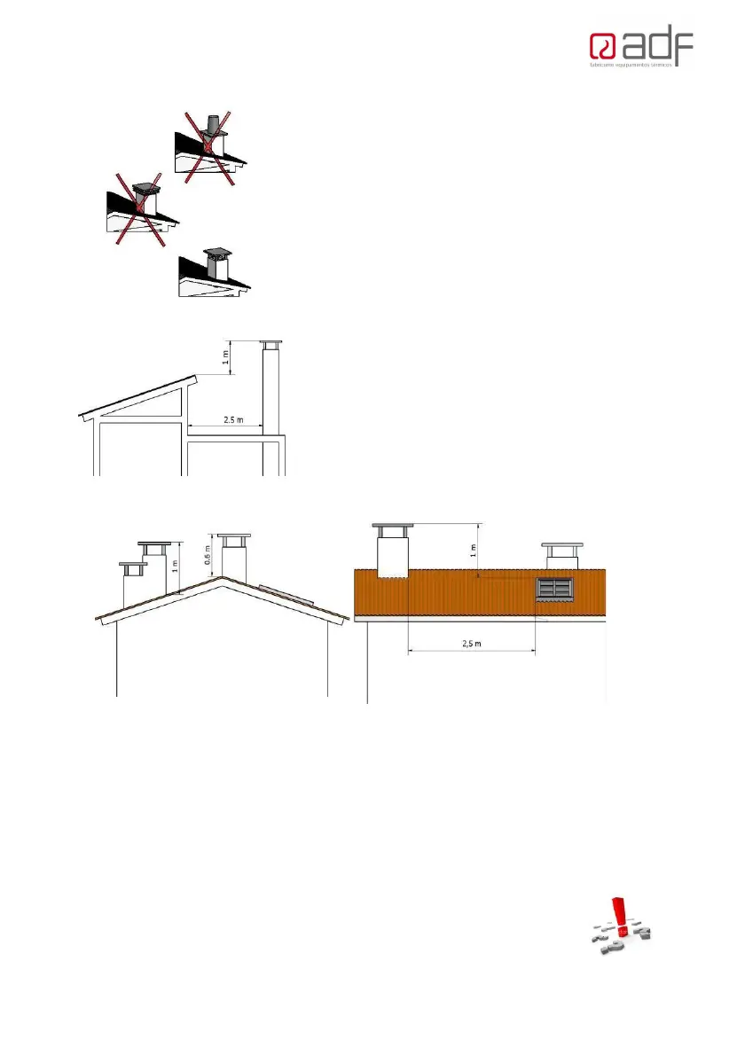 A chaminé deverá estar no mínimo a 0,6m acima da cumeeira,