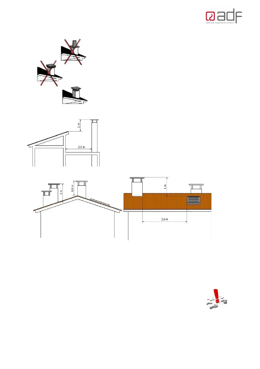 The chimney shall be at least 0.6m above the ridge, in any area