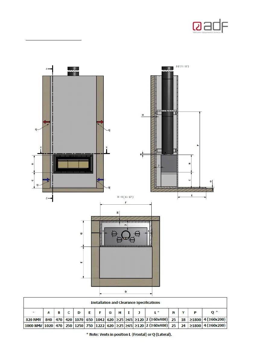 Installation and Clearance specifications are included in the Elevation drawings shown below: