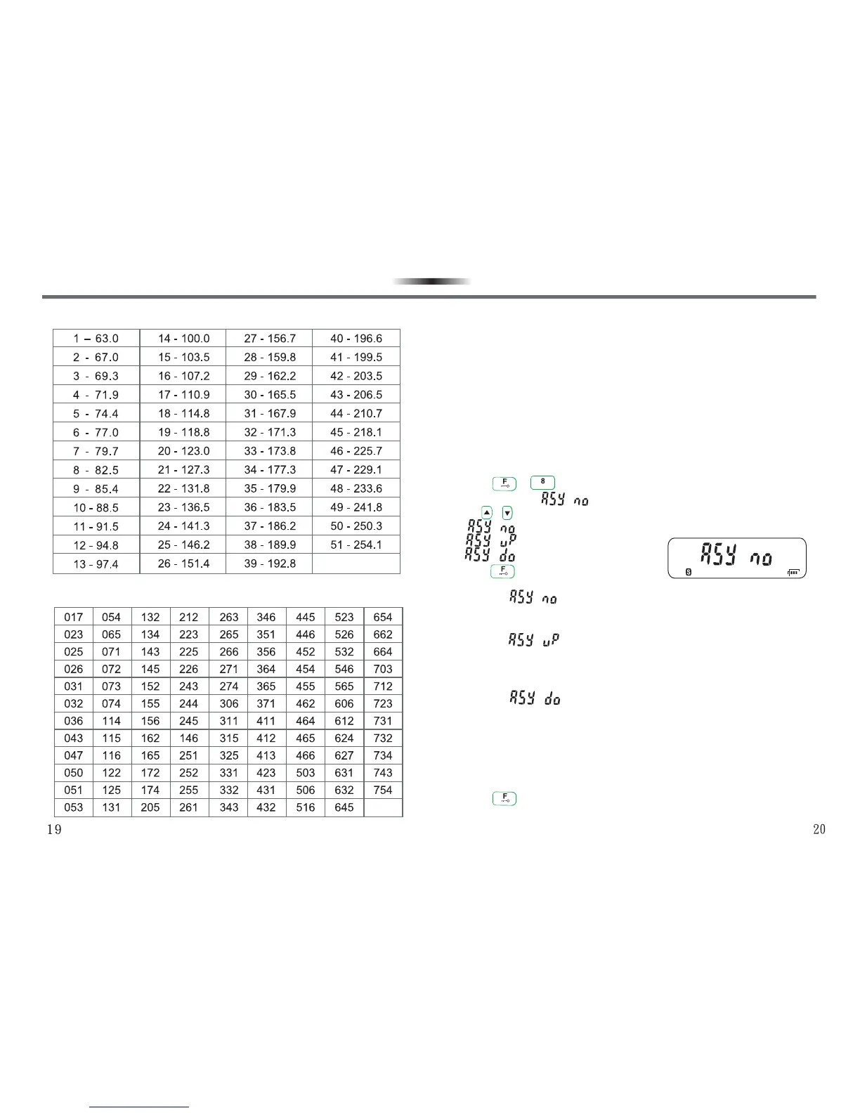 CTCSS STANDARD FREQUENCY TABLE