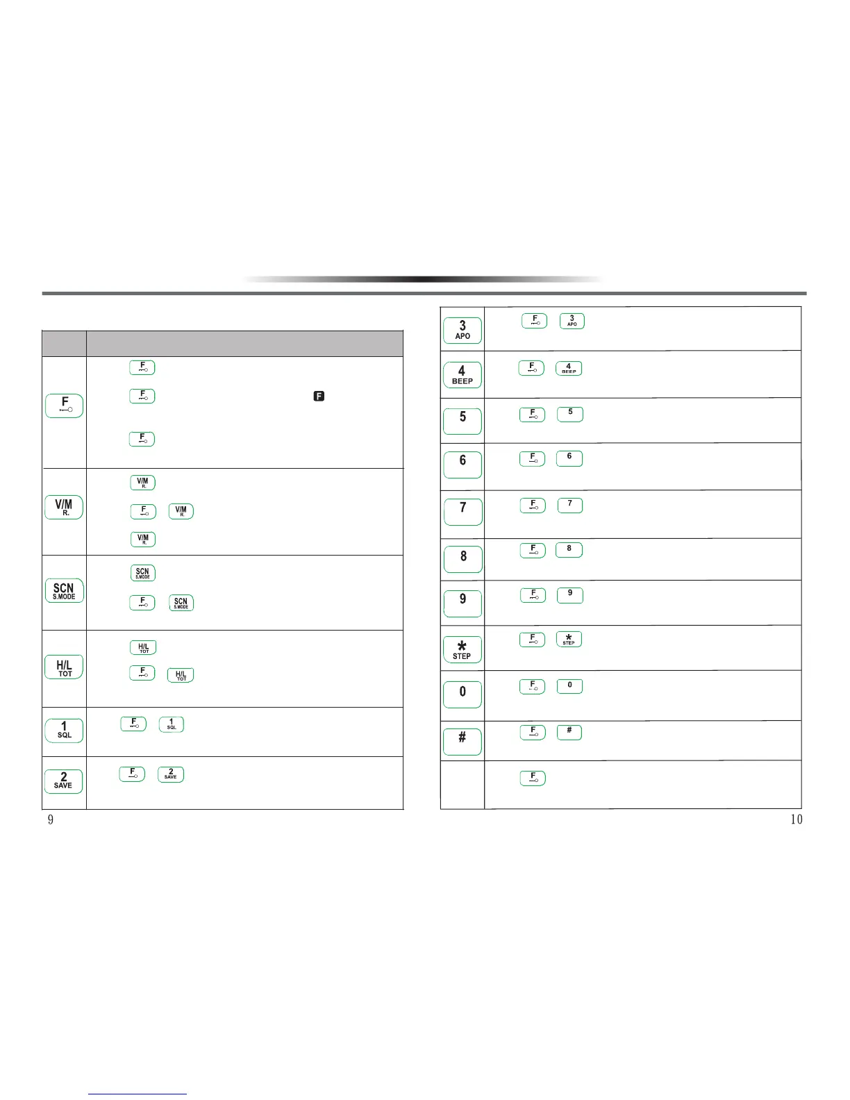 1.Press key for 3 seconds under VFO/MR/CH mode to