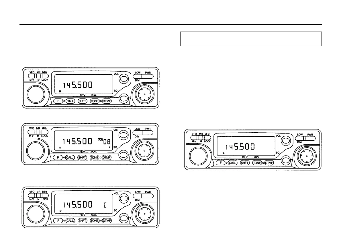 The F indicator and the Memory or CALL channel indicator will turn