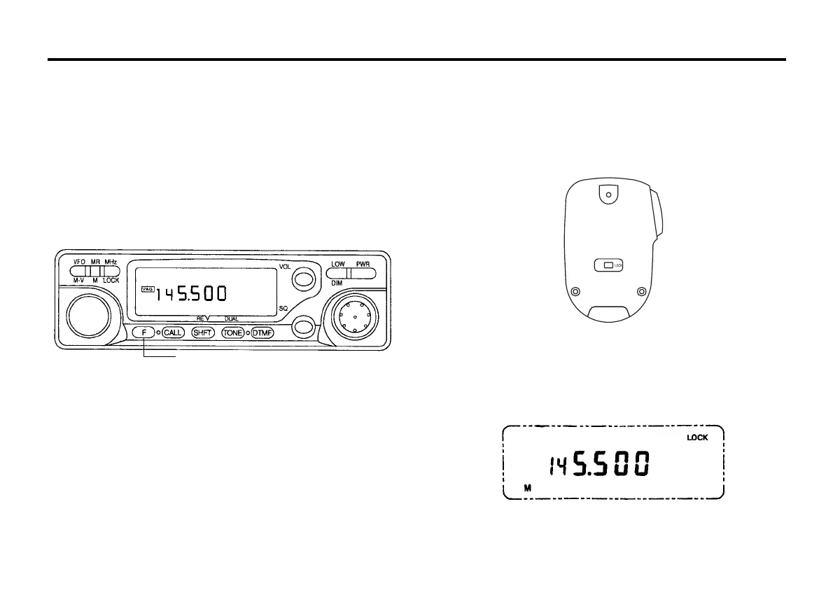 The panel keys (except F and MHz/LOCK and LOW key) and the