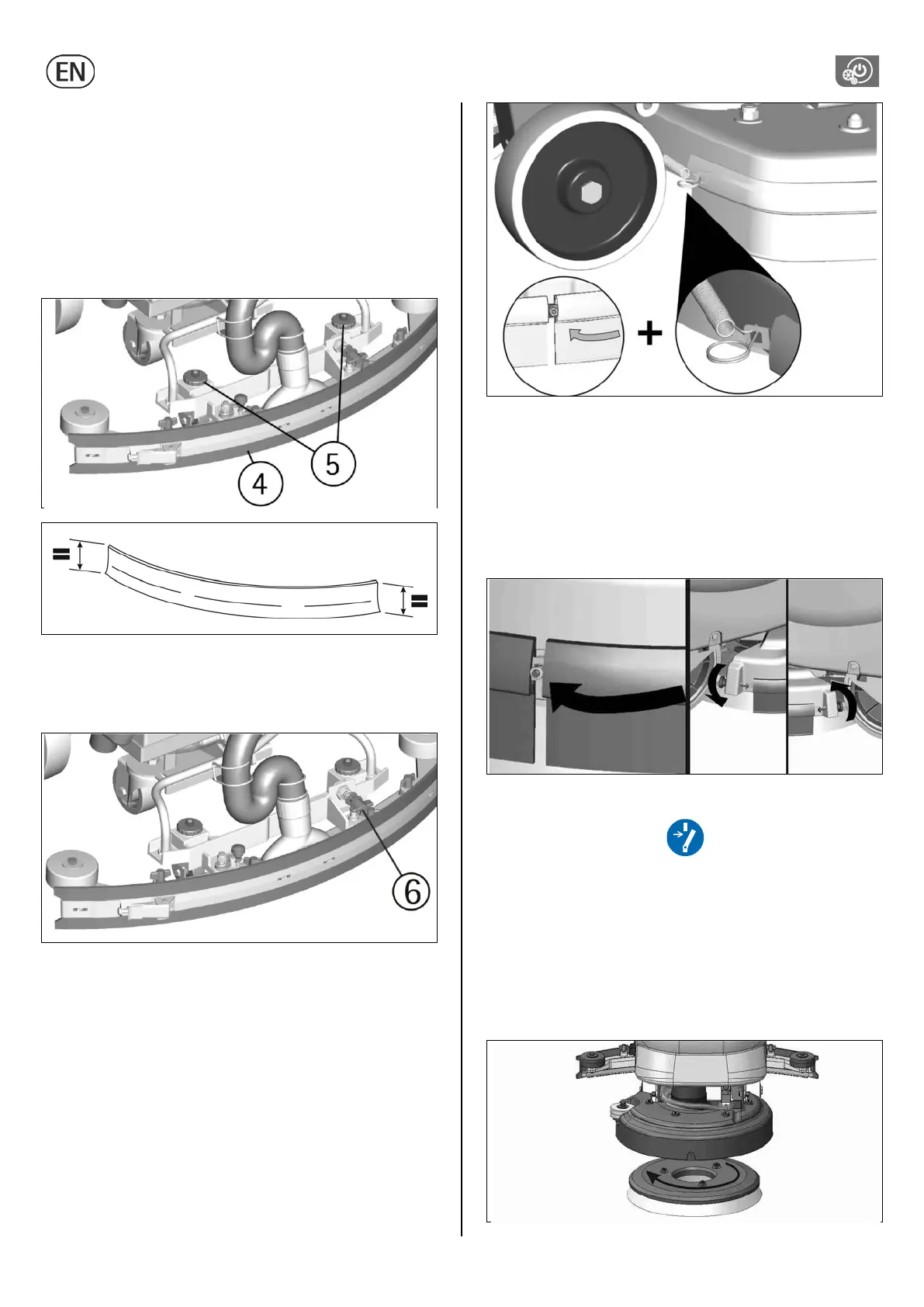 lower blade of the rear squeegee rubber (4) must work slightly bent