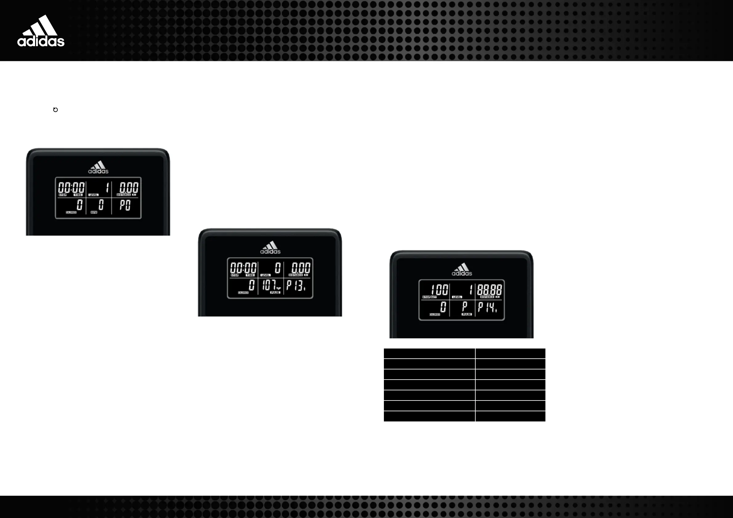 User can adjust TIME/DISTANCE/CALORIES/PULSE