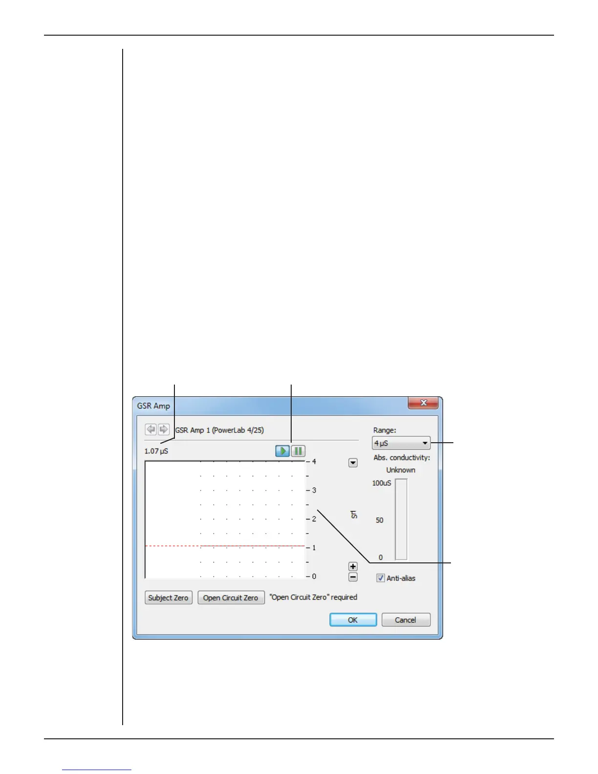 Note: You cannot start sampling in LabChart if a connected GSR Amp is not zeroed.