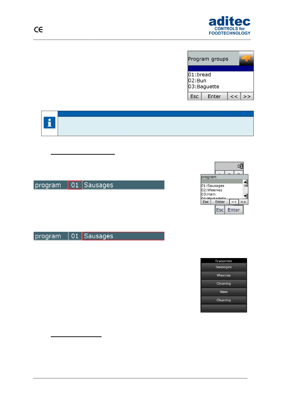 aditec MIC 900 - Selecting a Program; Program Number; Program Name; Favourites List