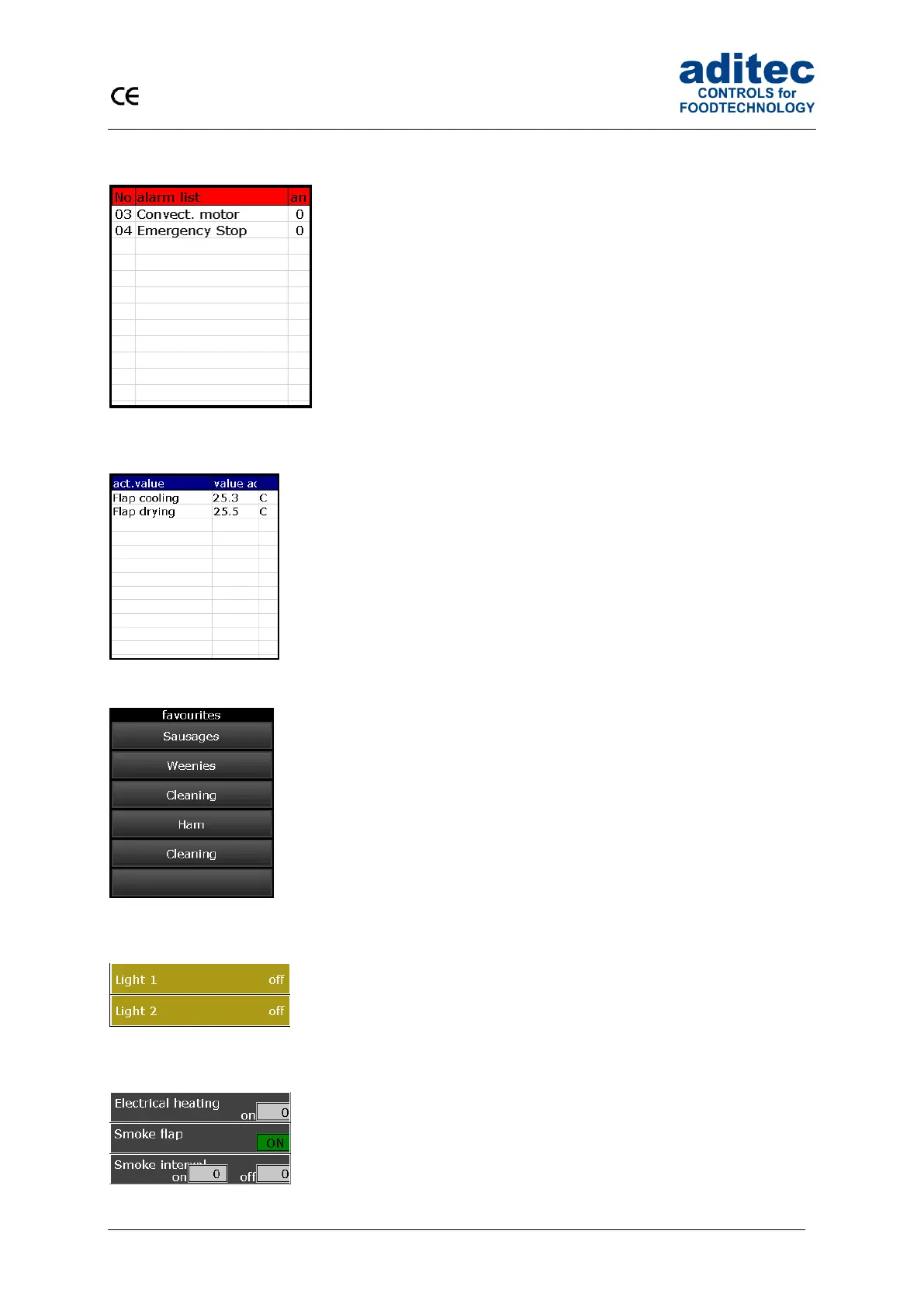 aditec MIC 900 - Alarm Messages; Optional Control Loops; Measured Values; Favourites; Aggregate Buttons