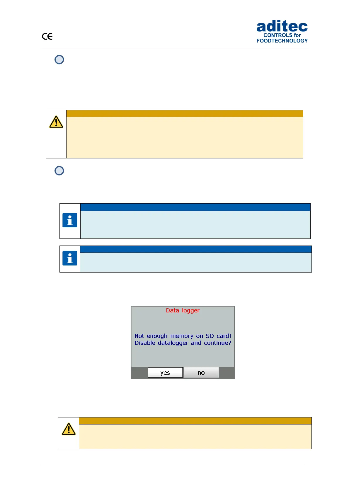 If the option „Data logger“ is enabled, but there is not enough memory on the SD card, the