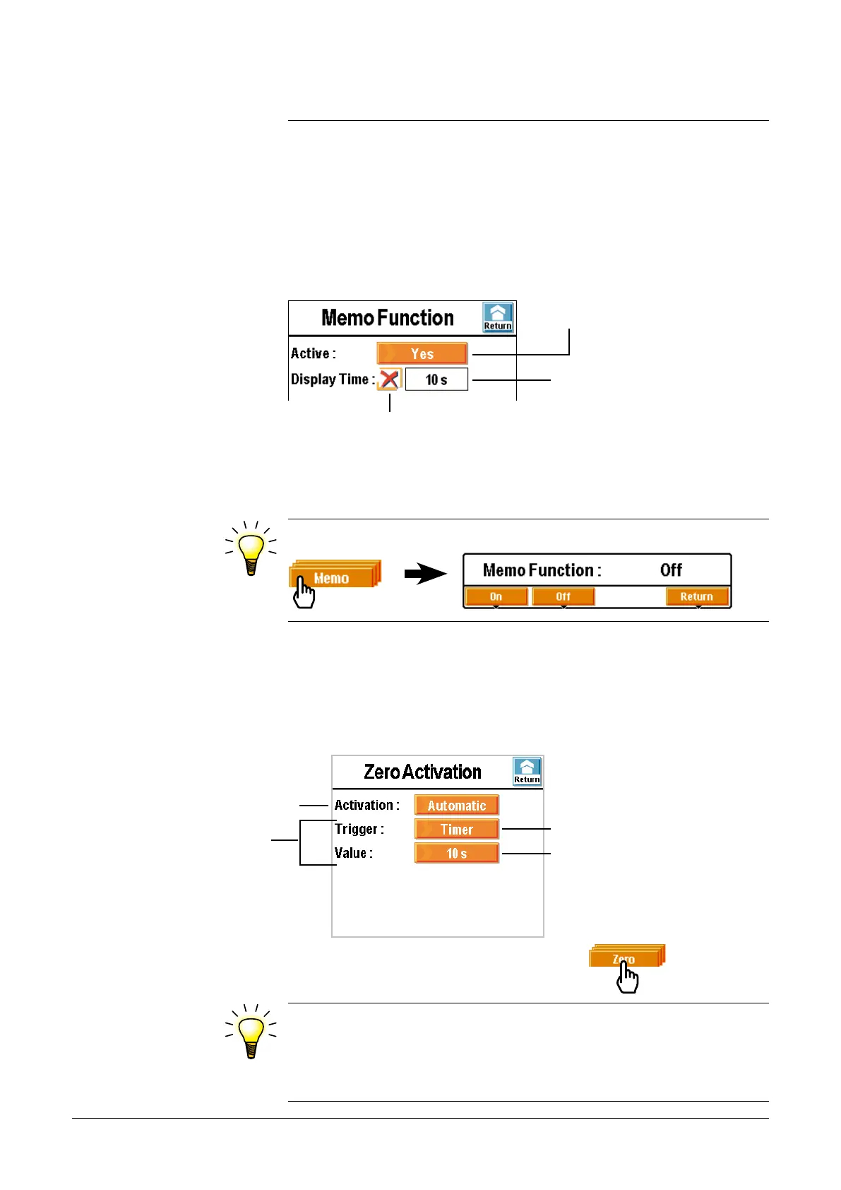 Manual activation of the Zero function: .