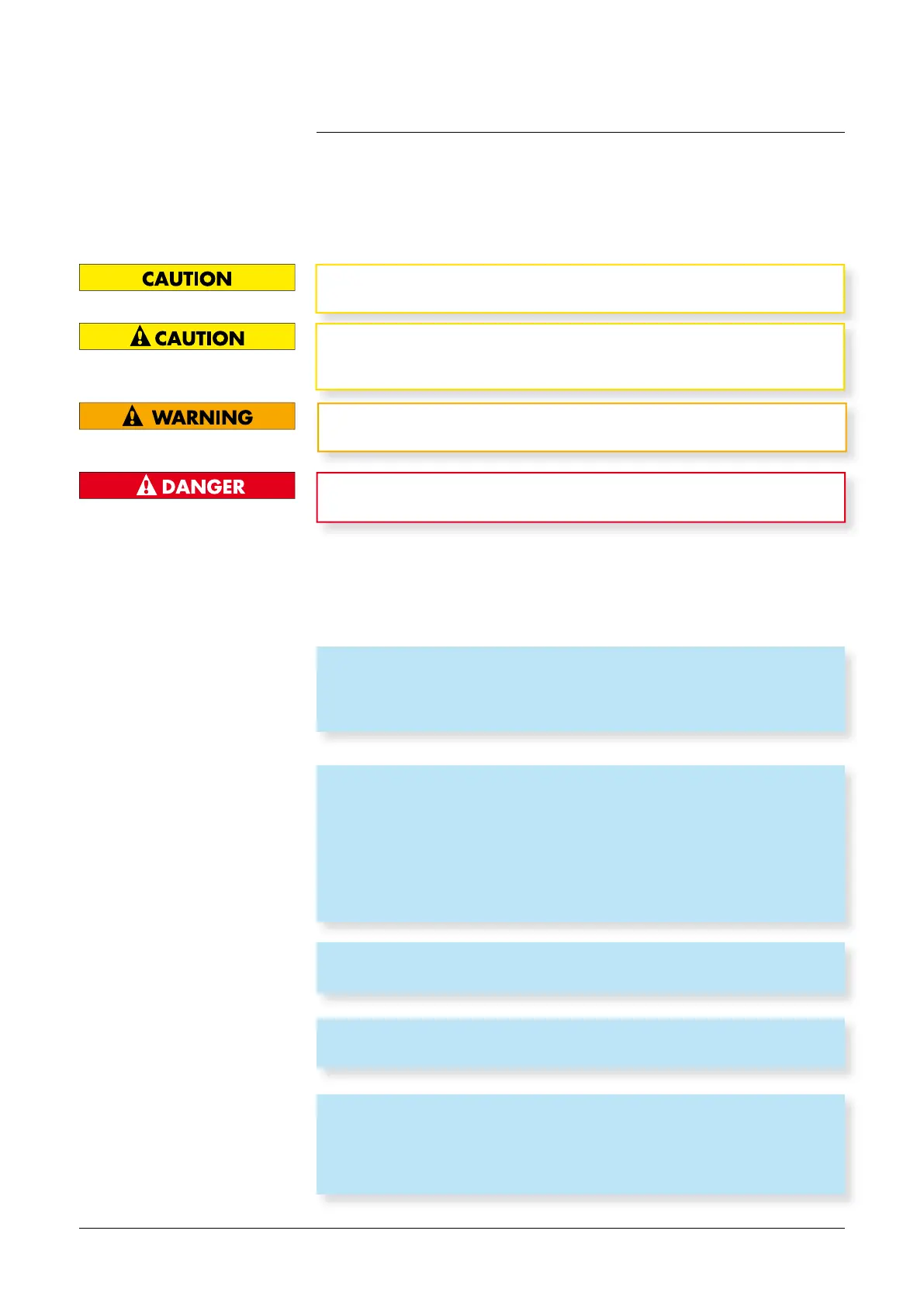 the ‘Caution’, ‘Warning’ and ‘Danger’ symbols.