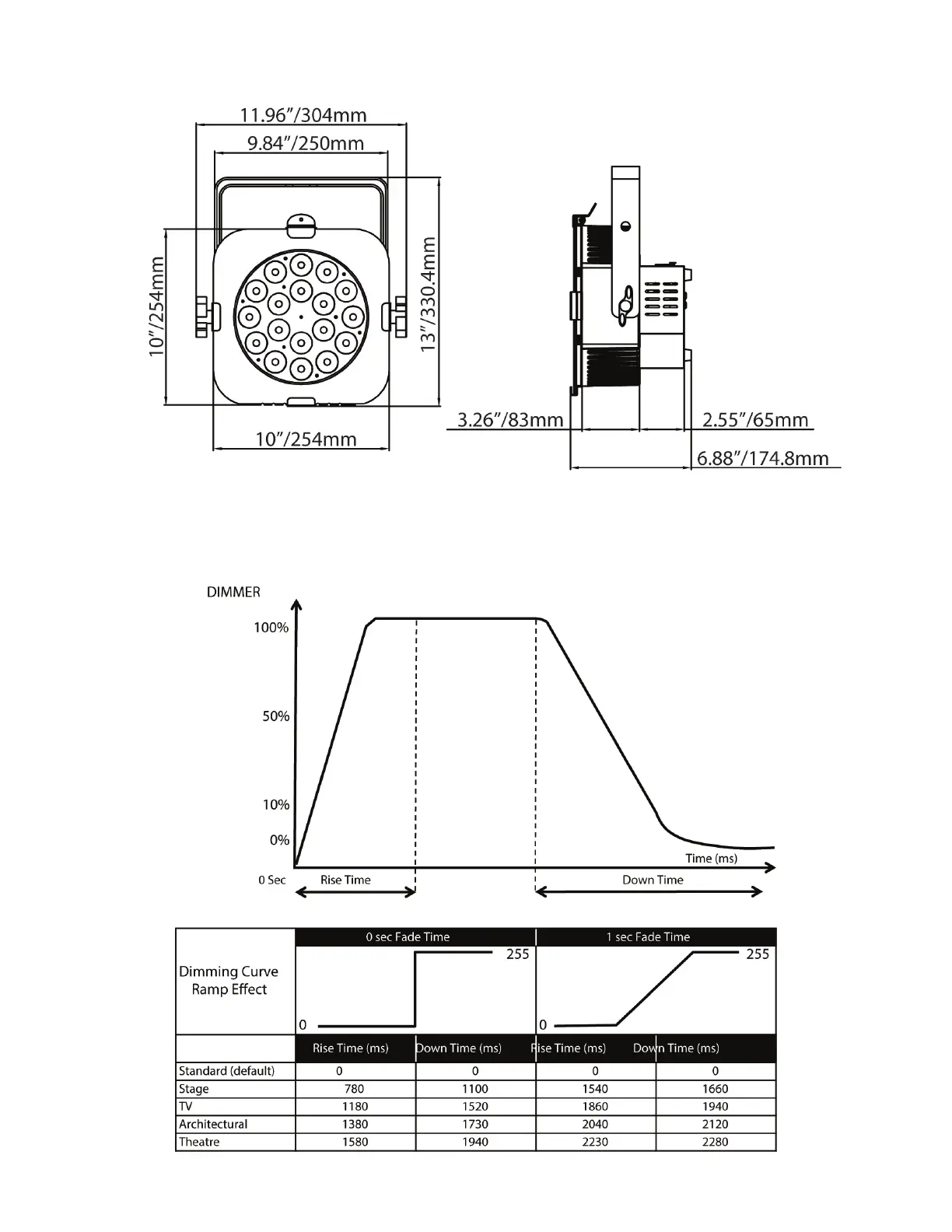 ADJ 18P Hex - C a D D R a W I N G; D I M M E R C U R V E C H a R T