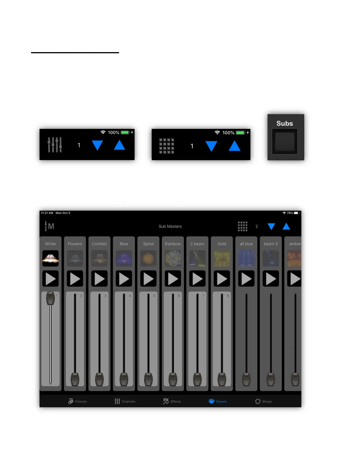 scene on a page is represented by one sub master strip. Scene buttons on the
