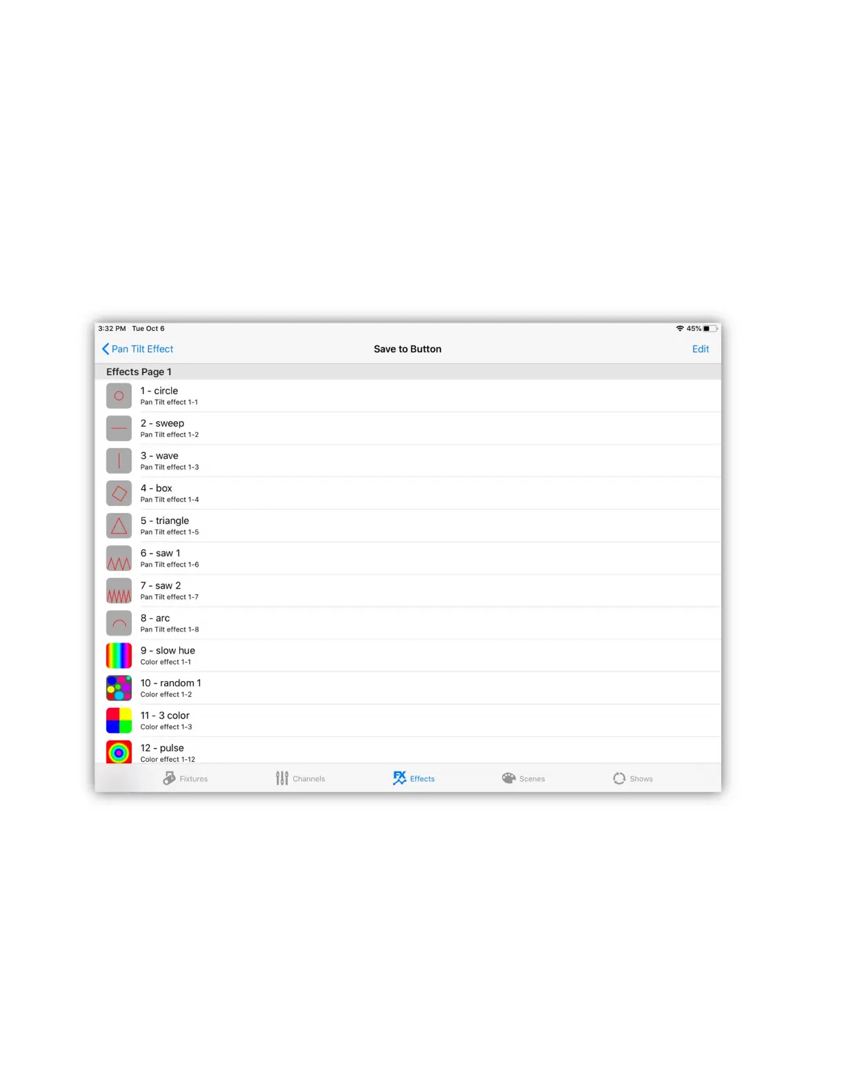 Tapping the “Save” button at the top of the effects editor screen or on the Link