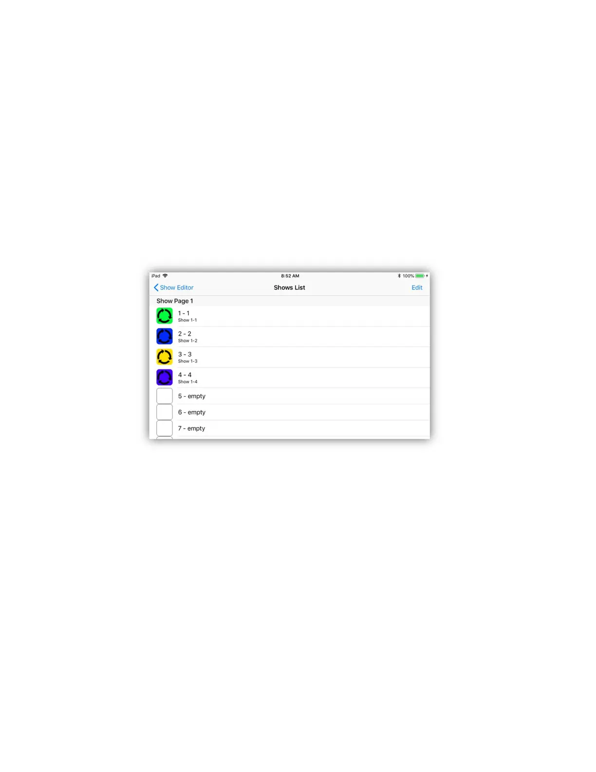 From the show editor, tap the “Load” button at the top of the screen. This will