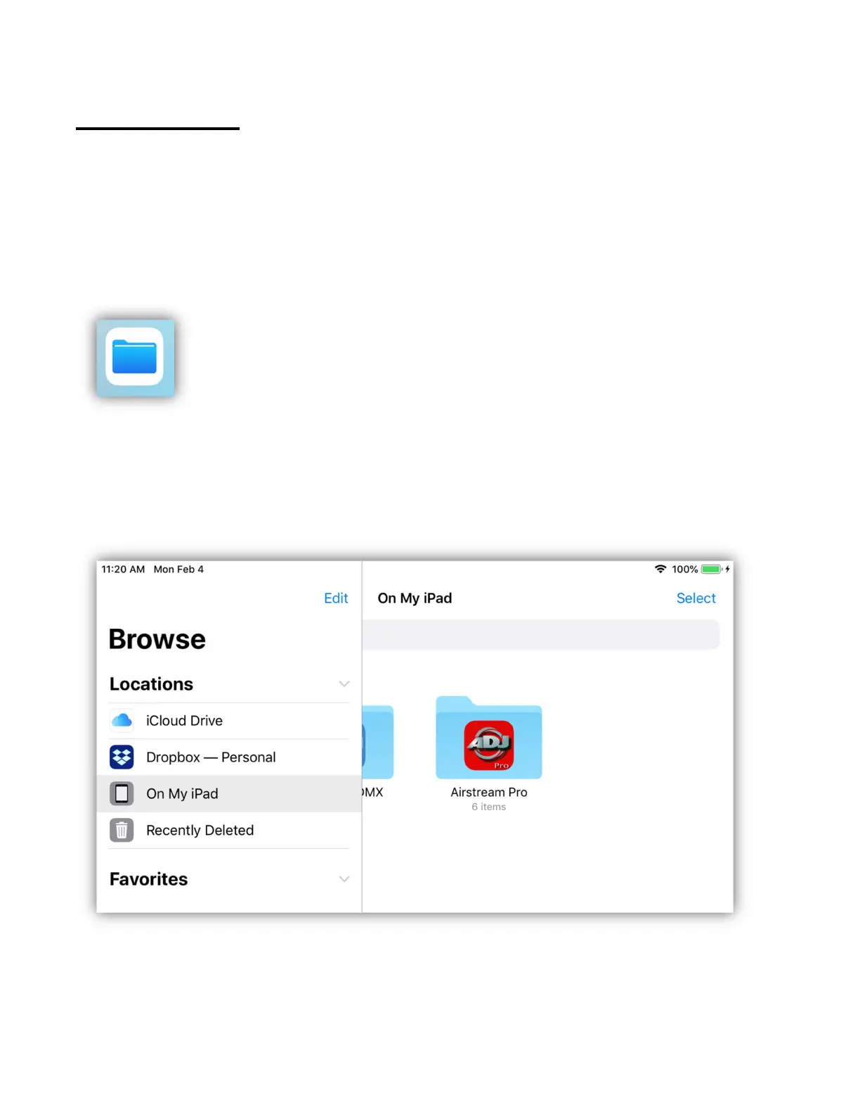 IPad. When you select a location, you will be able to view the files there. Note