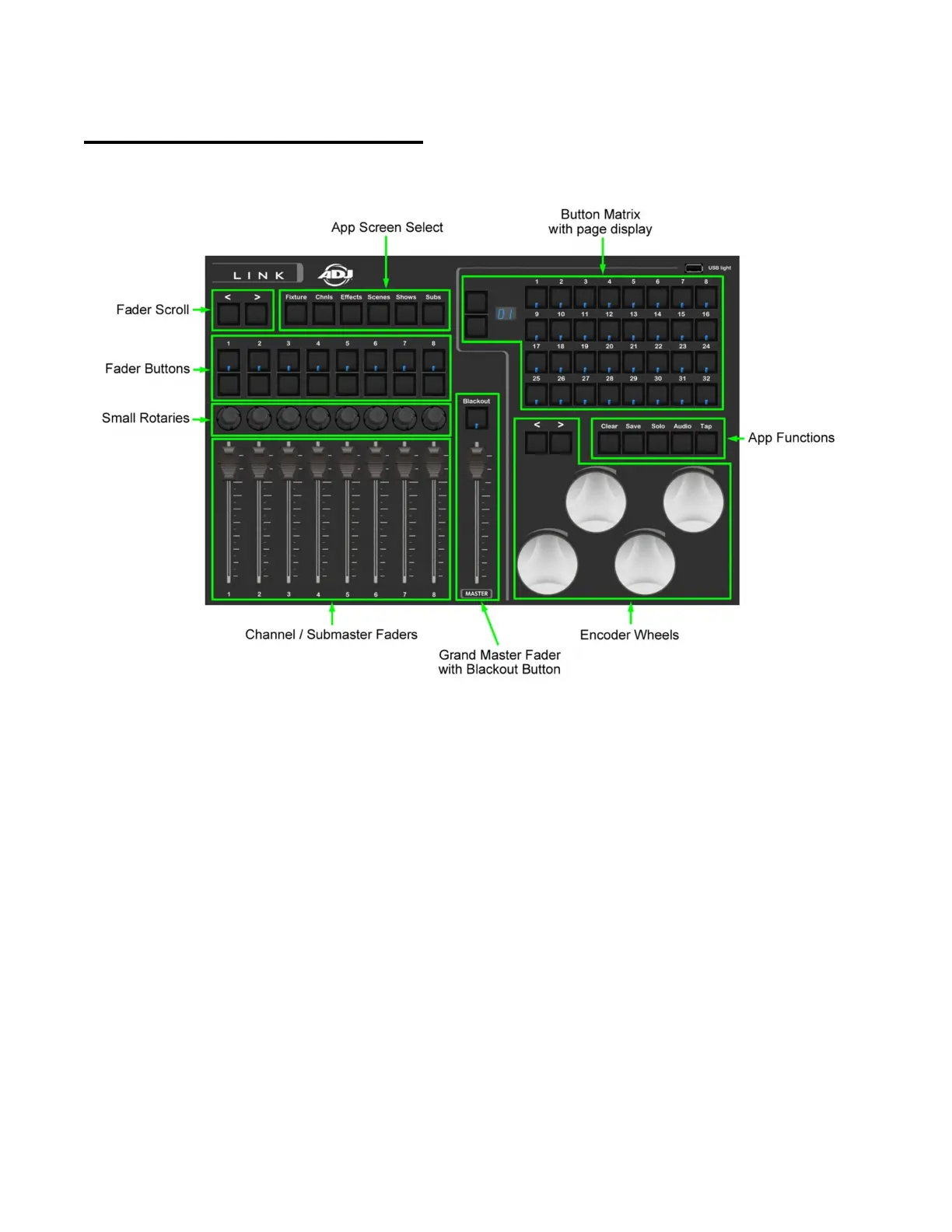 buttons, the grand master, blackout and app function buttons.