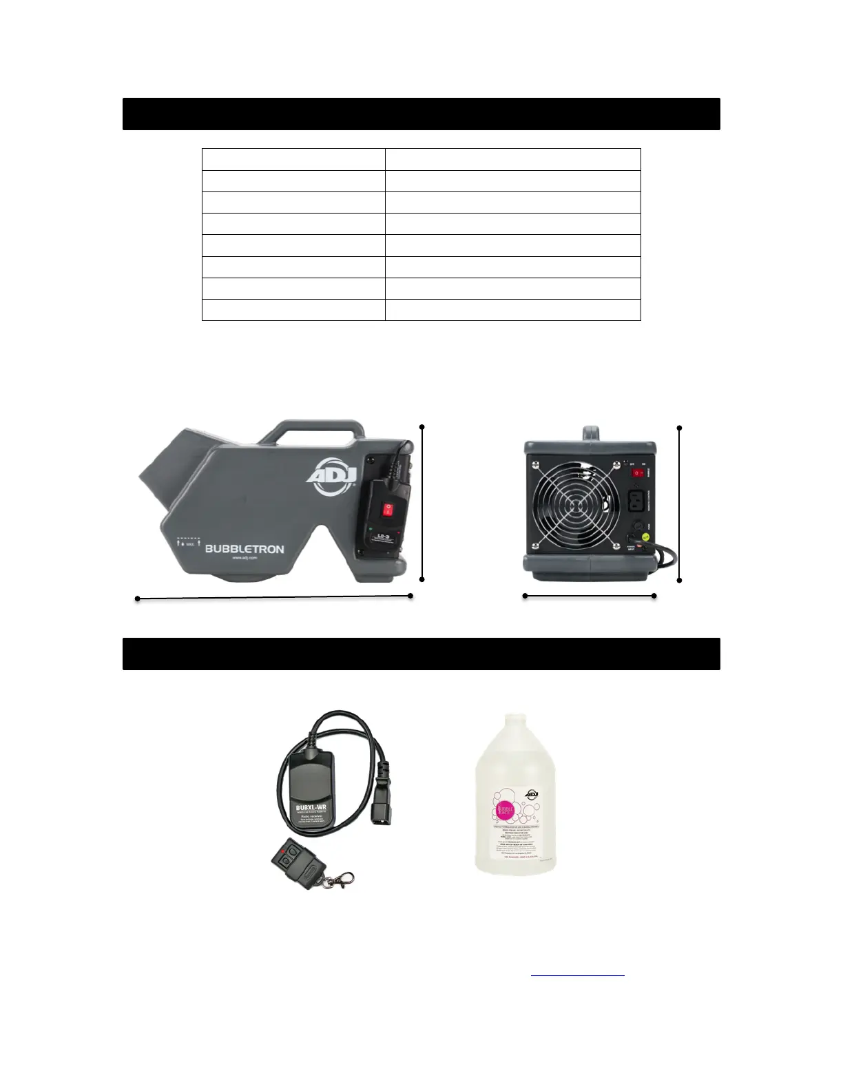 ADJ BubbleTron - Specifications and Accessories; Technical Specifications; Optional Accessories