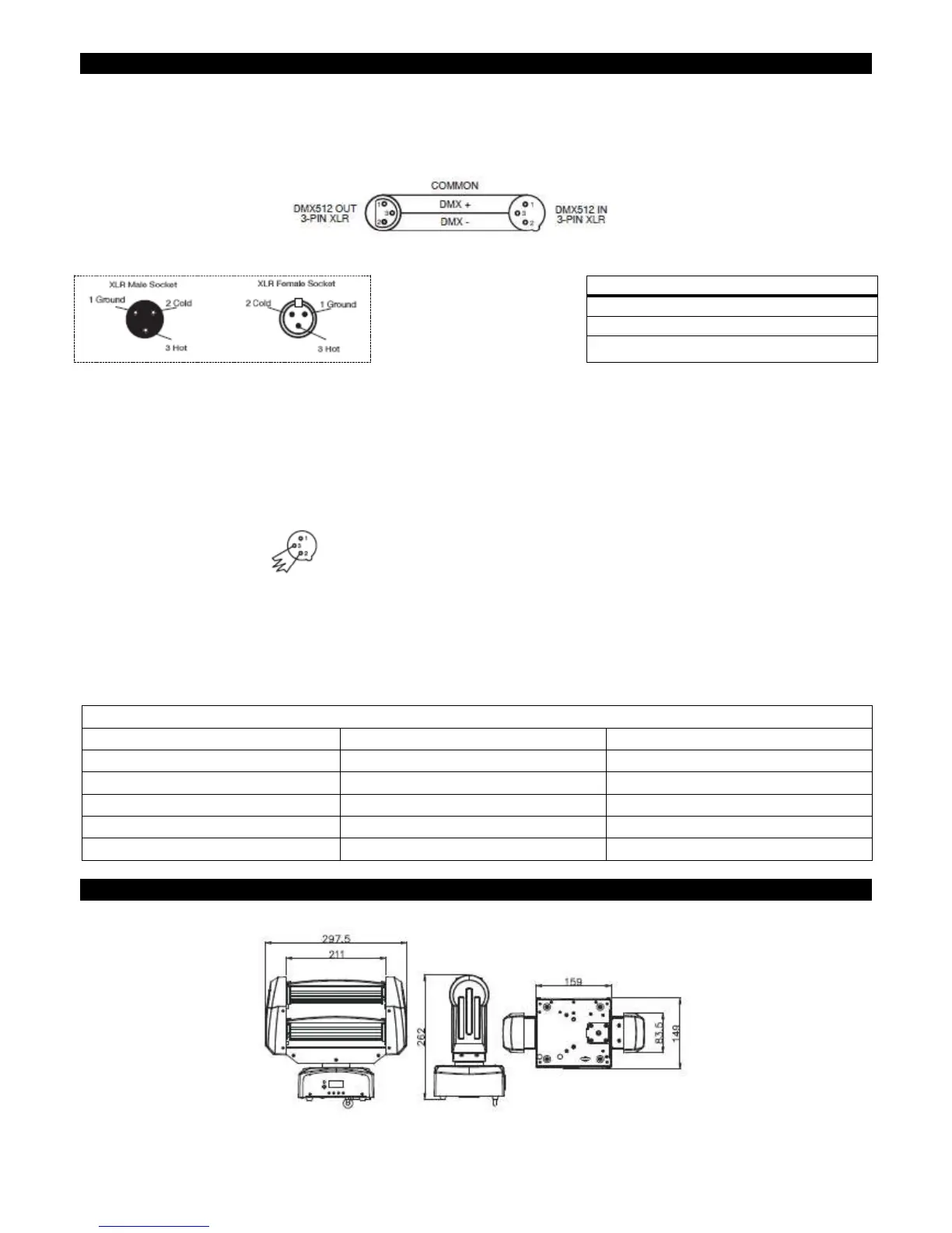 place of 3-pin. 5-pin DMX fixtures may be implemented in a 3-pin DMX line. When inserting standard 5-pin