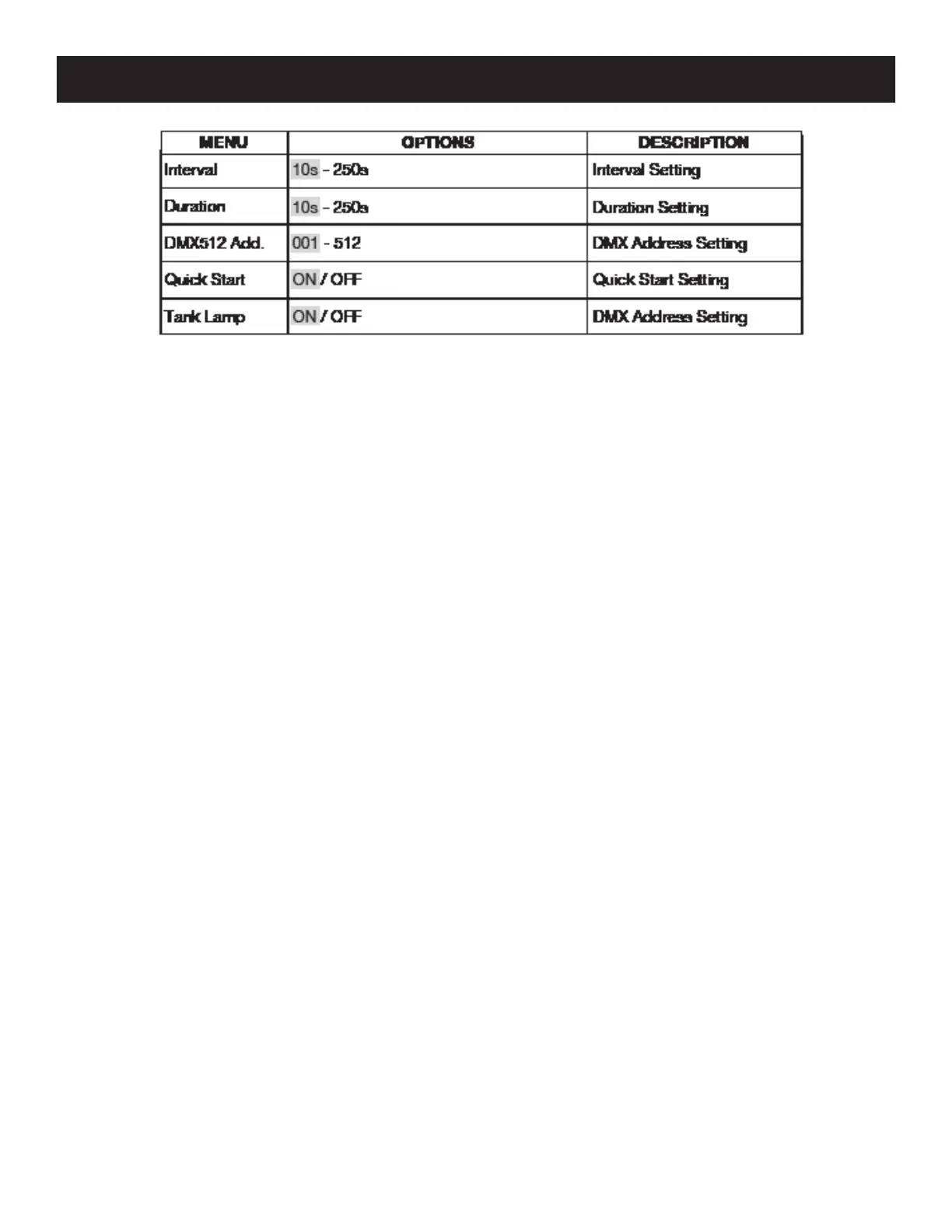 - DURATION - In this submenu you can adjust the Duration Setting. This setting allows the user to adjust