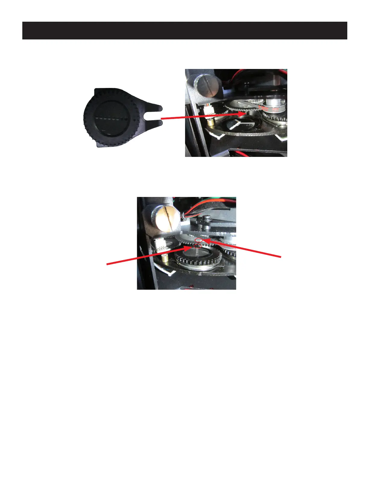 9. Making sure that the mark on the geared portion of the gobo holder is still aligned with the gobo
