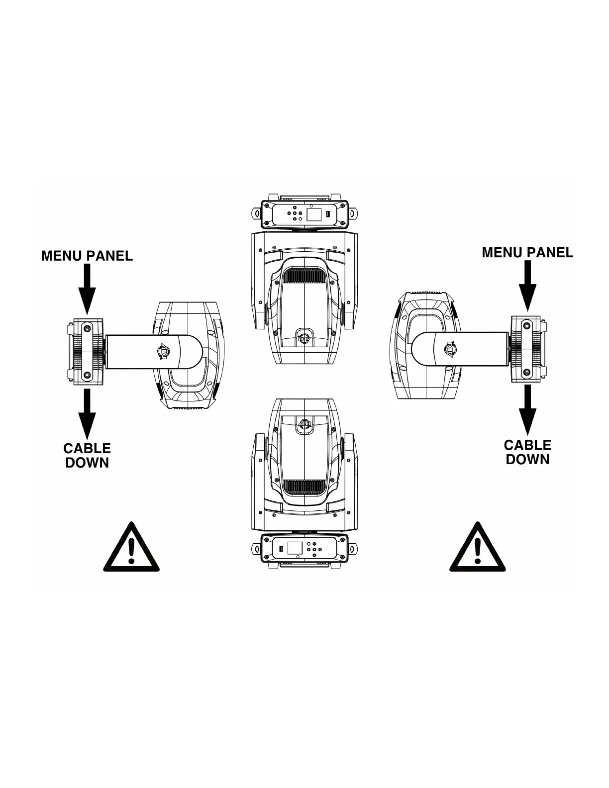 mounted sideways on trussing, or set on a at level surface. Always use and install a safety cable as a