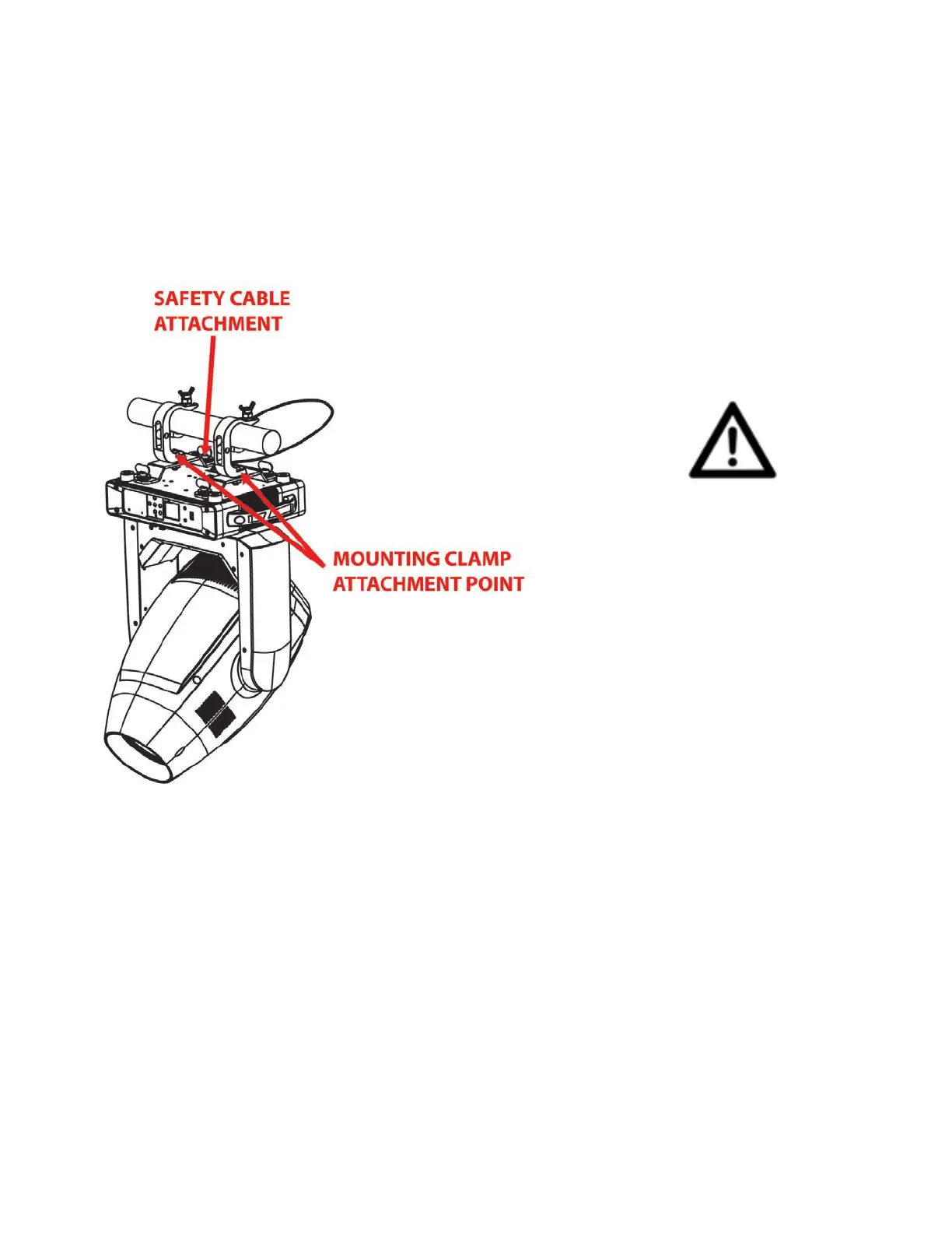 rated clamps (not included) to the clamp attachment points and attach a separate SAFETY CABLE