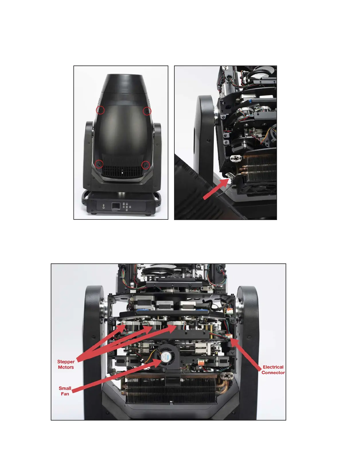 ing towards you. Locate the gobo wheel module, which prominently features a row of 3 stepper