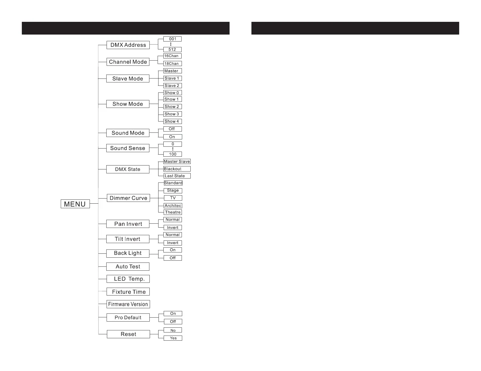2. “X Chan” will now be displayed, “X” represents the displayed DMX