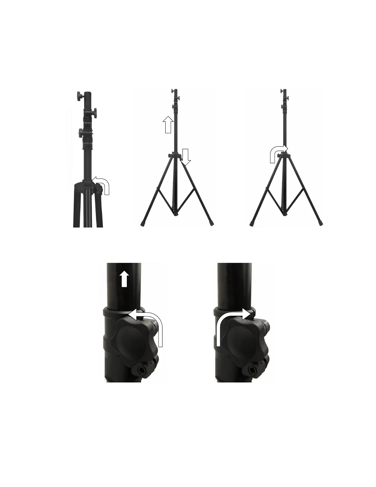 Loosen Knob D by turning it counter clockwise. Spread the legs by pulling up on the outer pipe until