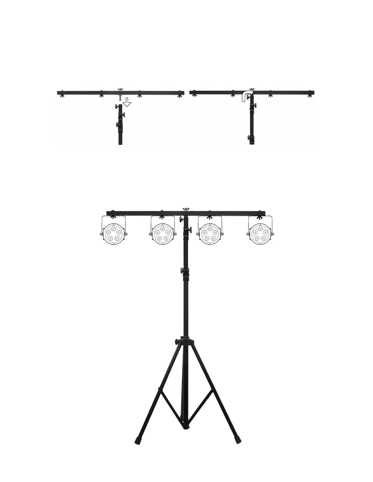 The stand comes with a T-Bar for mounting optional lighting and other equipment. To use the T-Bar,
