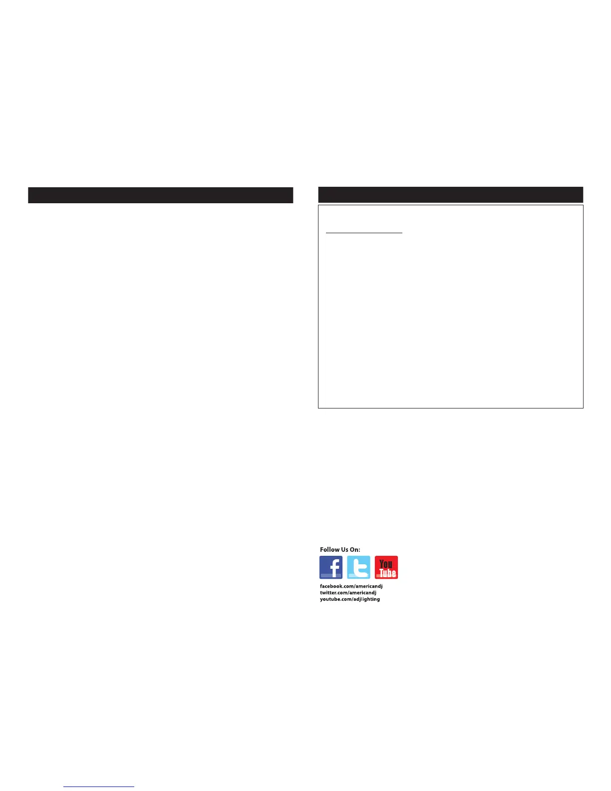 at 800-322-6337. Send the product only to the ADJ Products, LLC factory. All