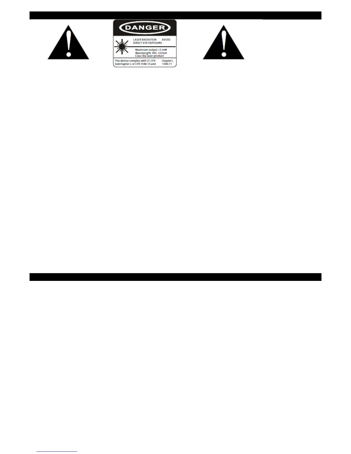 potentially injure or blind you or your audience. Even very small amounts of laser beam light are potentially