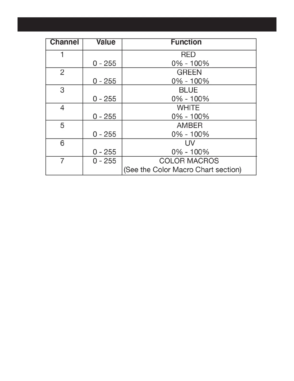 ADJ UB 6H - 12 Channel DMX Mode; 12 Channel DMX Function Mapping