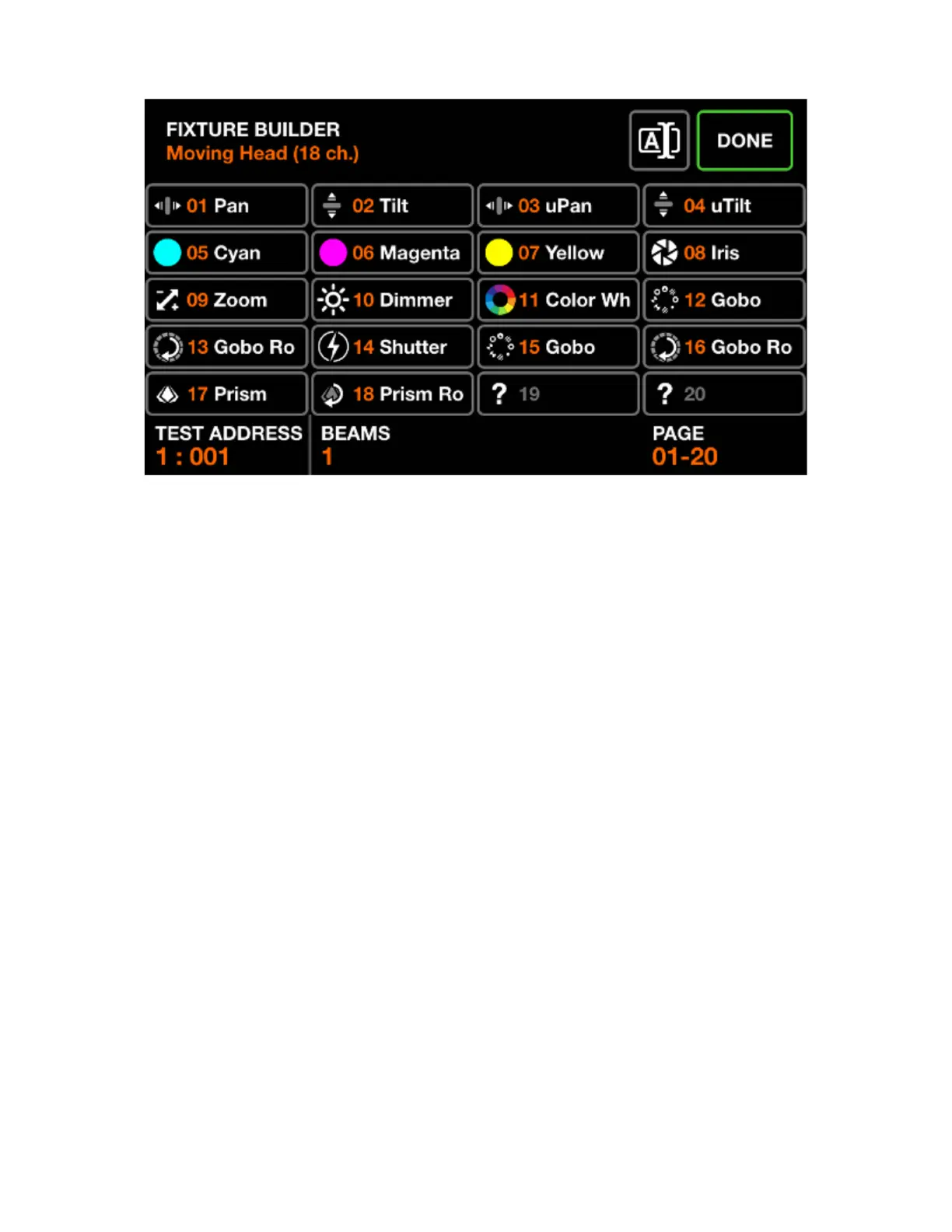 The xture builder is used to create xture proles. A xture prole is a list of channels and features