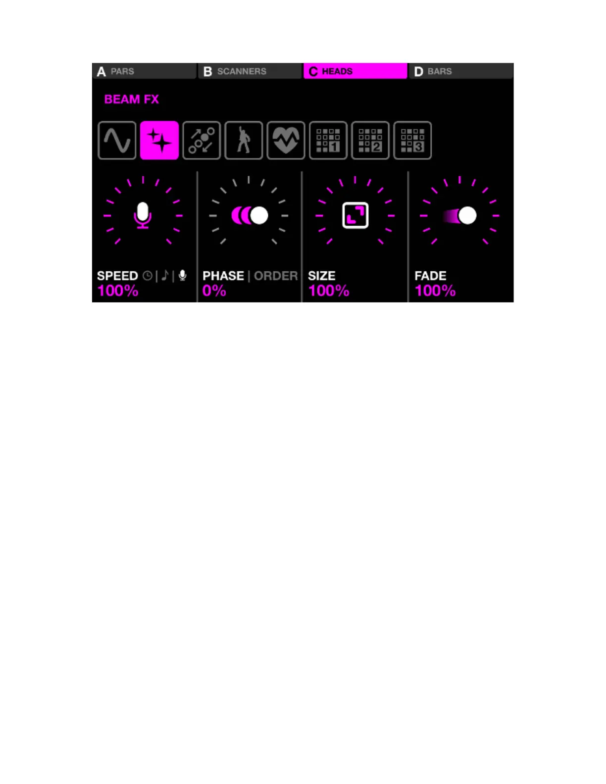 and Order mode. Phase is controlled as a %. Order will change the xture order consequently playing