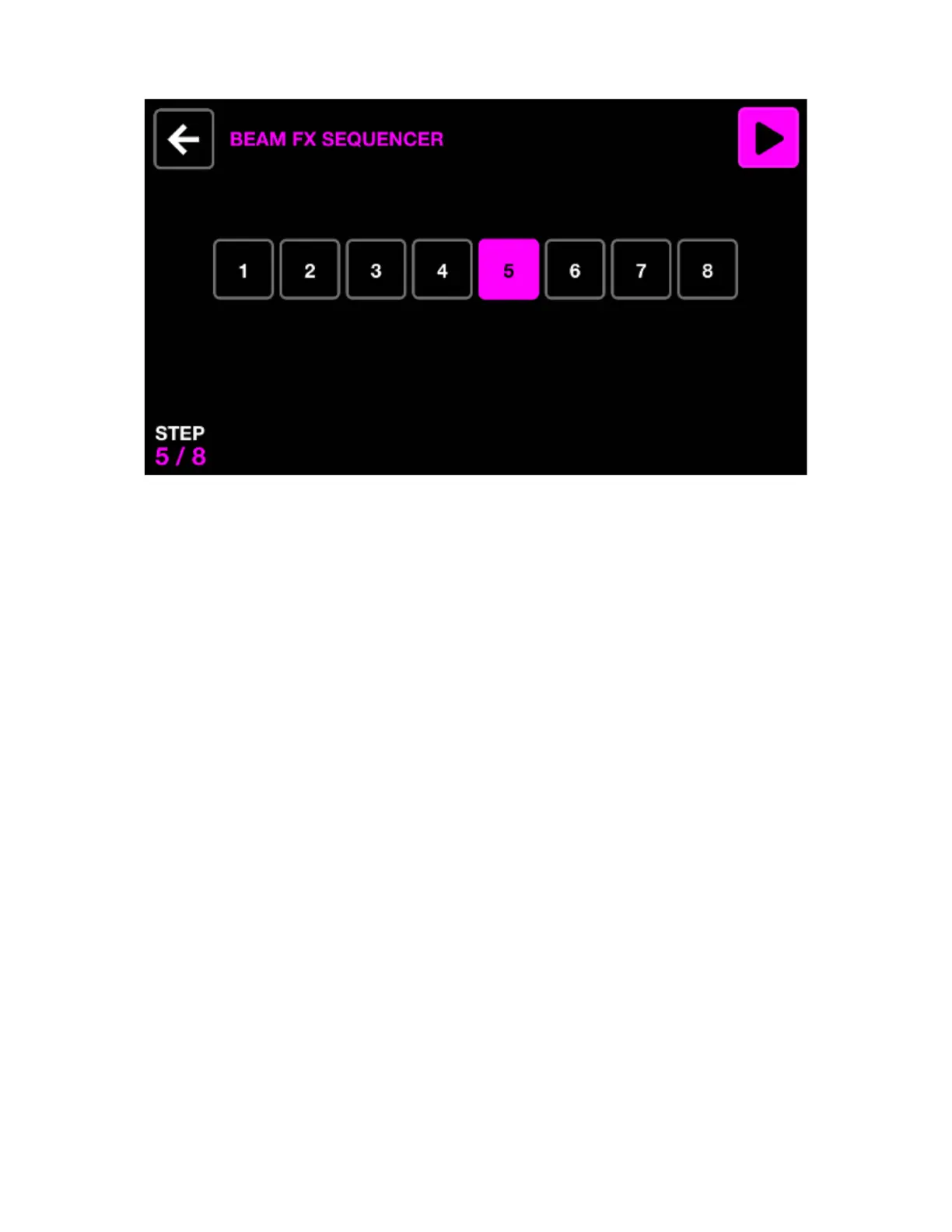 • Eight step buttons with the currently selected step highlighted and shown to the bottom left.