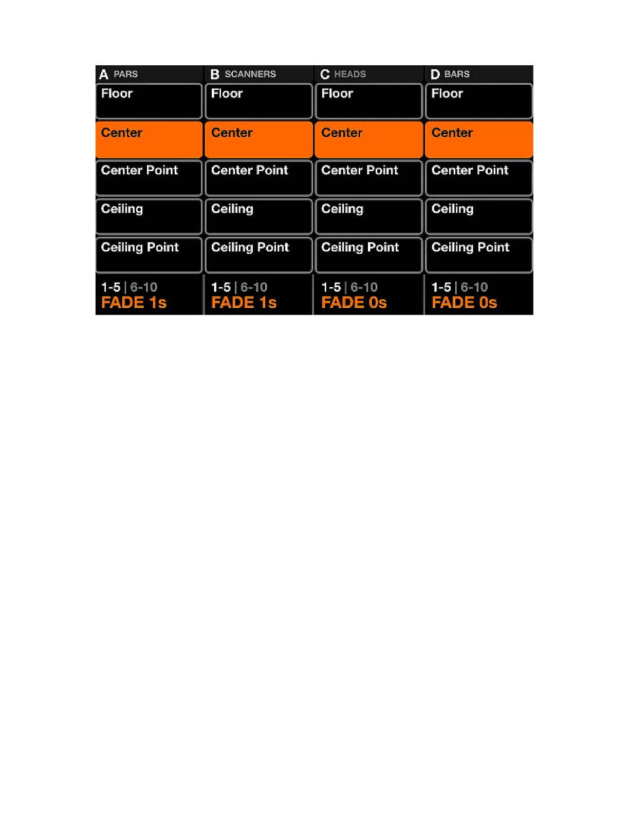 • Four columns containing ve positions. Each column represents one group. Shift + hit the BPM TAP