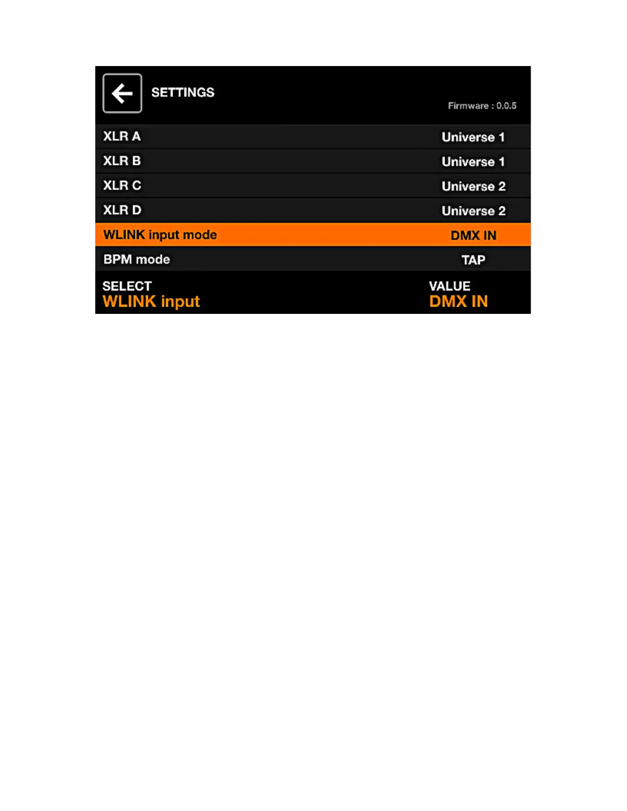 • XLR A - XLR D: the DMX universes to map to XLR A-D.