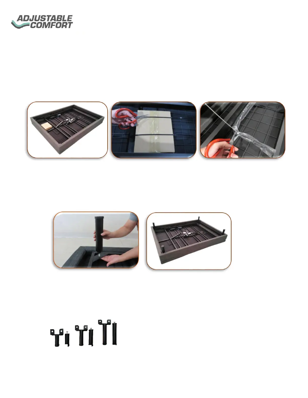 1. Locate the box containing the bed legs, tighten the 4 corner legs as shown.