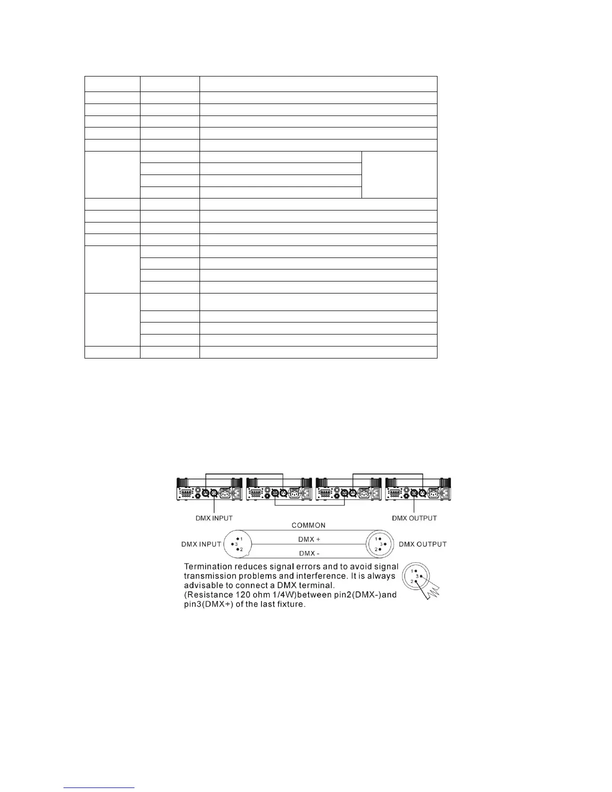 Adkins LED MINI MOVING HEAD - 13 Channel Mode; DMX512 Connections; Connection Diagram and Termination