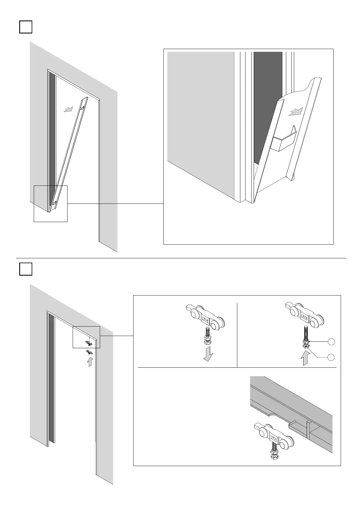 INSERIRE CARRELLI DI SCORRIMENTO (FORNITI CON IL CONTROTELAIO)