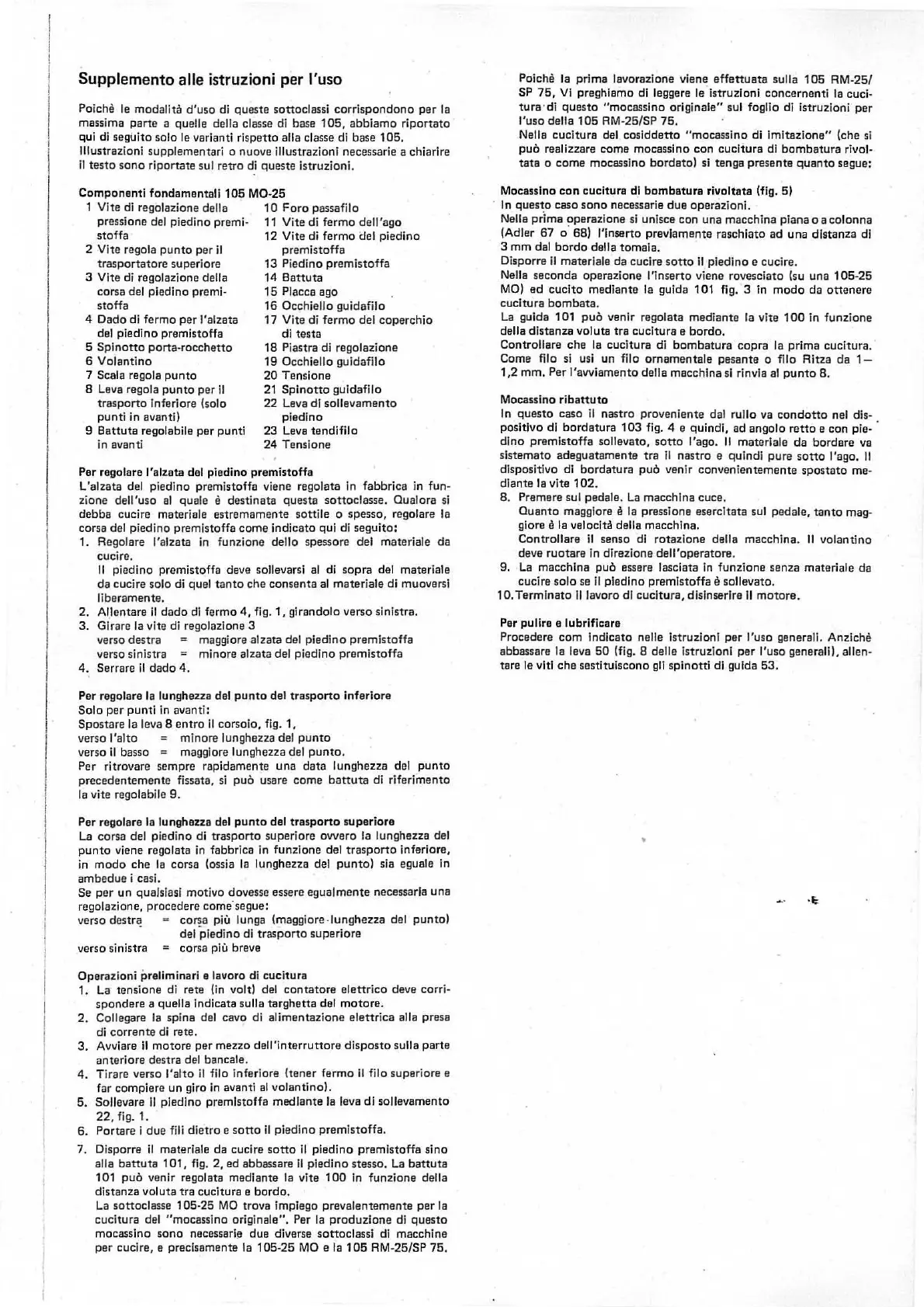 Par regolare l'alzata del piedino premistotta