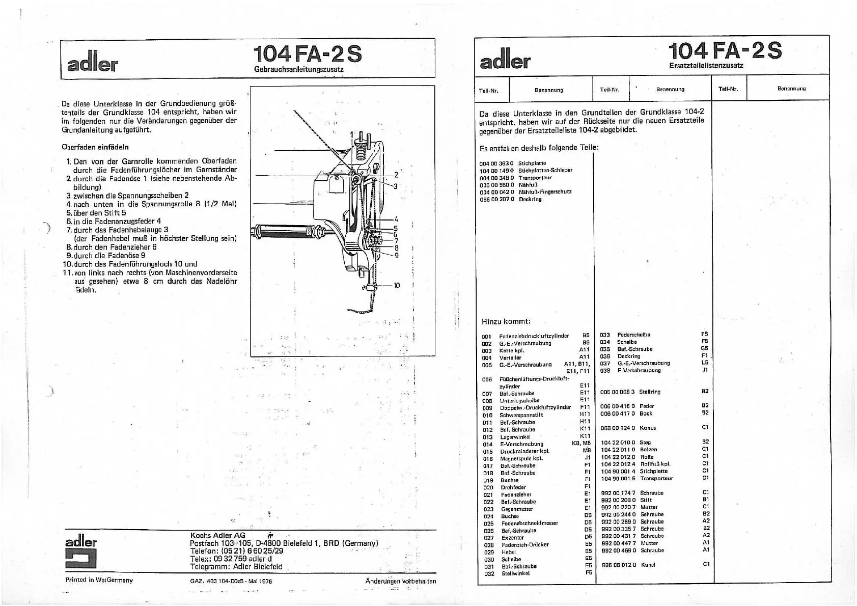 Fadenfuhrungsloch 10 und