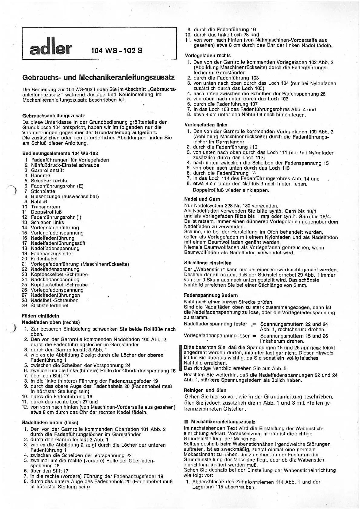 Gebrauchs- und Mechanikeranleitungszusatz