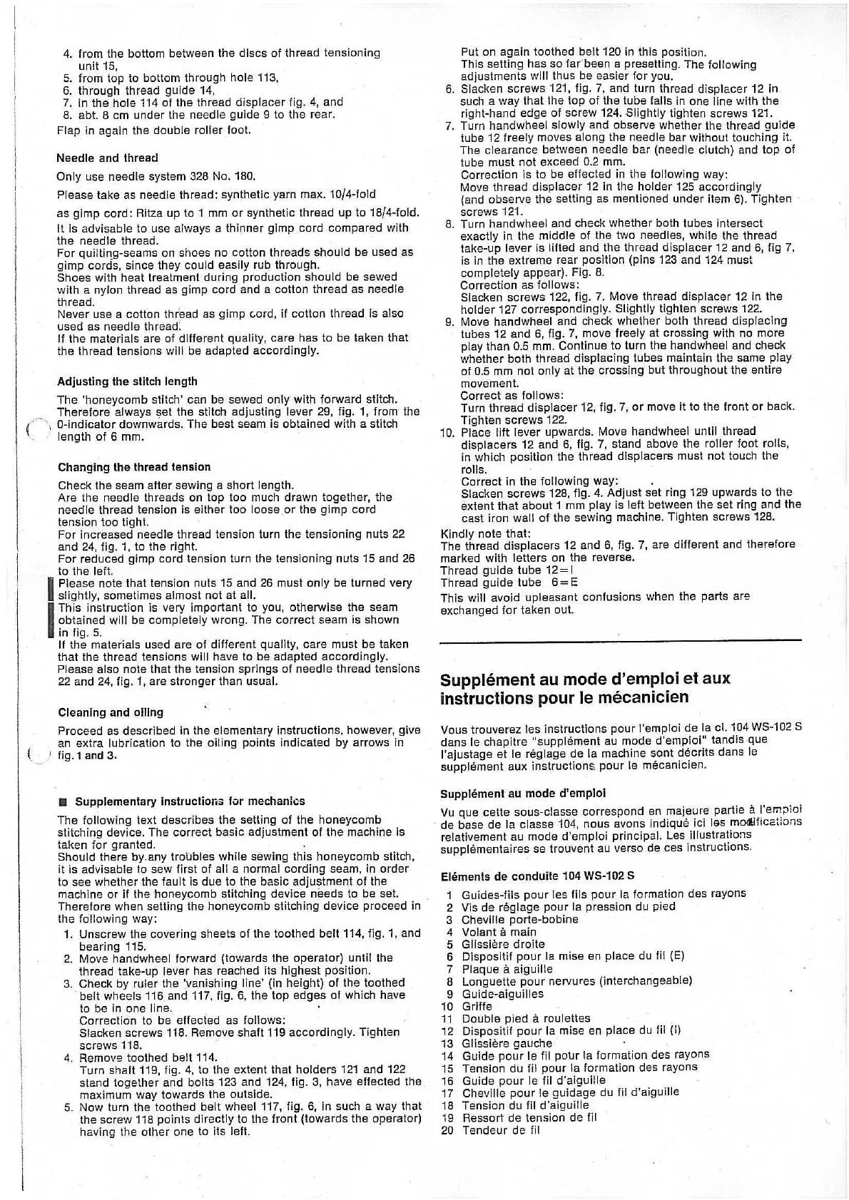 l'emploi de la cl. 104 WS-102 S